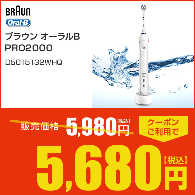 Wowma! ライフデザイン セレクションにてブラウン オーラルB PRO2000 D5015132WHQがWowma!還元祭商品ページ内クーポン適用で5680円で購入できます。